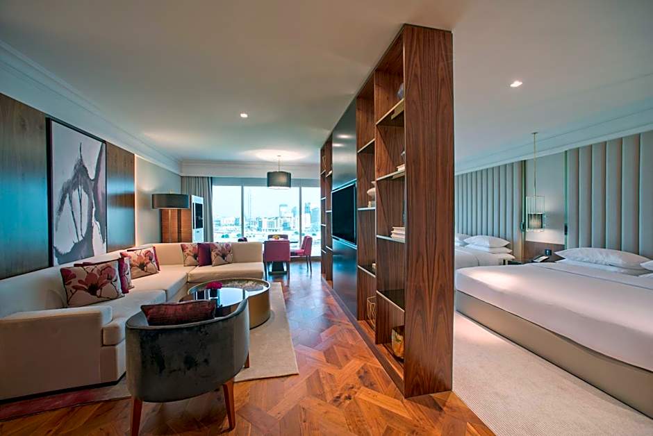 This suite offers Arabian touches and views of Dubai's skyline. It offers a flat-screen TV, a mini-bar and a spacious work area. This room offers Arabian touches and views of Dubai's skyline. It offers a flat-screen TV, a mini-bar and a spacious work area. Guests with children or families will be provided a designated venue for dining and cocktails as part of Club package.