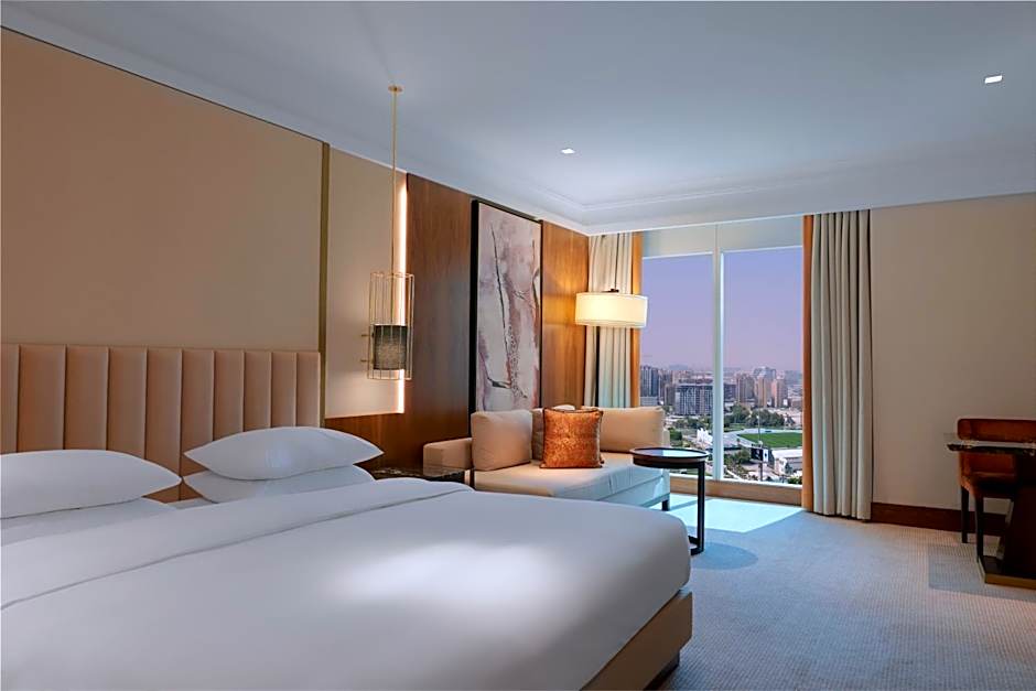 This room offers Arabian touches and views of Dubai's skyline. It offers a flat-screen TV, a mini-bar and a spacious work area. Guests with children or families will be provided a designated venue for dining and cocktails as part of Club package.